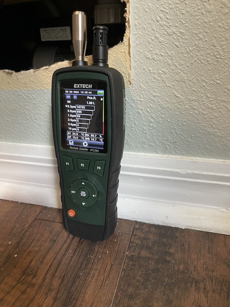 Air samples are meticulously collected from Using state-of-the-art infrared imaging and other moisture detection tools, we accurately pinpoint areas in your home where moisture has accumulated or leaks are occurring. This process is critical for determining where air and surface samples should be taken for mold analysis. It also provides vital information needed for effective mold remediation by highlighting the sources of water intrusion.